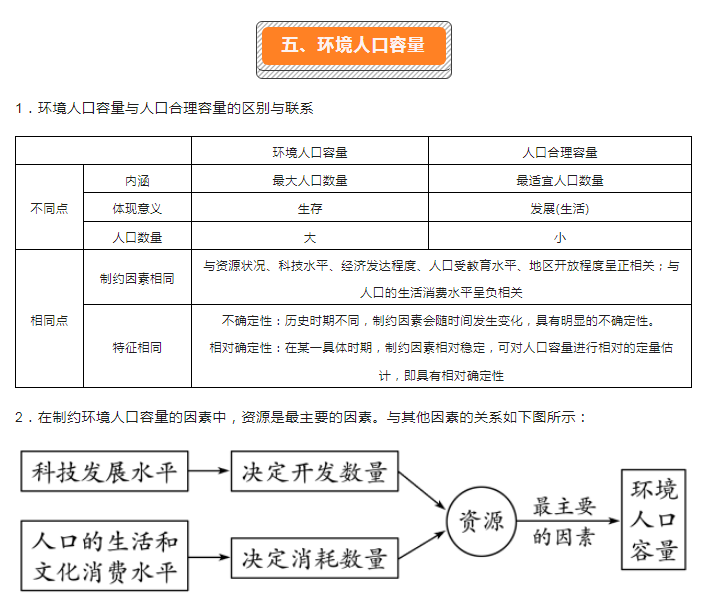 2023年初中人文地理核心考点总结:环境人口容量