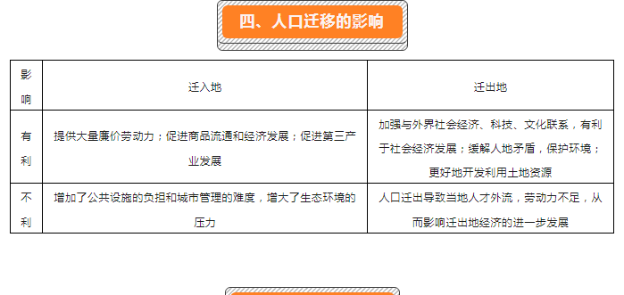 2023年初中人文地理核心考点总结:人口迁移的影响