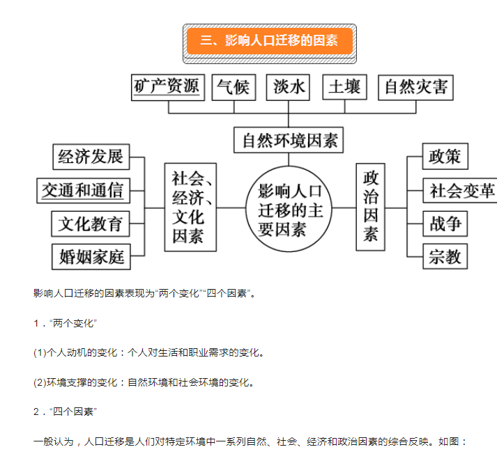 2023年初中人文地理核心考点总结:影响人口迁移的因素