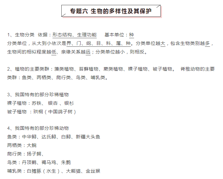 2023年初中生物超详细专题知识点:生物的多样性及其保护