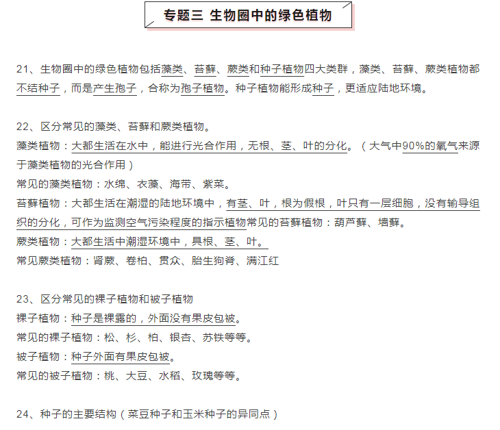 2023年初中生物超详细专题知识点:生物圈中的绿色植物