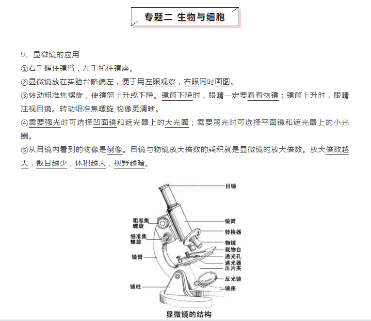 2023年初中生物超详细专题知识点:生物与细胞