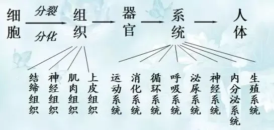 细胞分化:在生物体发育过程中,细胞在形态、结构和功能上逐渐发生变化的过程。组织:经细胞分化形成的形态相似,结构、功能相同的细胞联合在一起形成的细胞群。