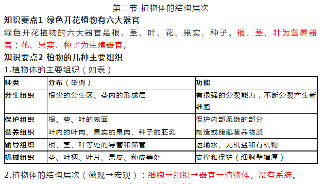 2023年初中生物体的结构层次知识点六:植物体的结构层次