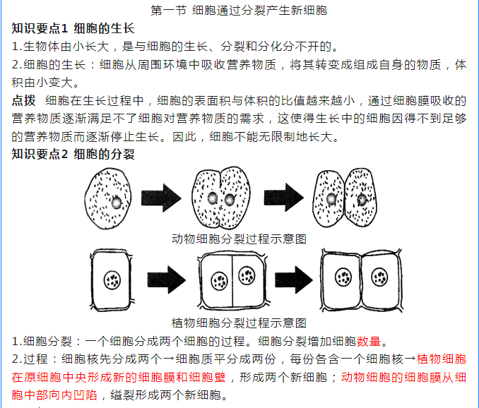 2023年初中生物体的结构层次知识点四:细胞通过分裂产生新细胞