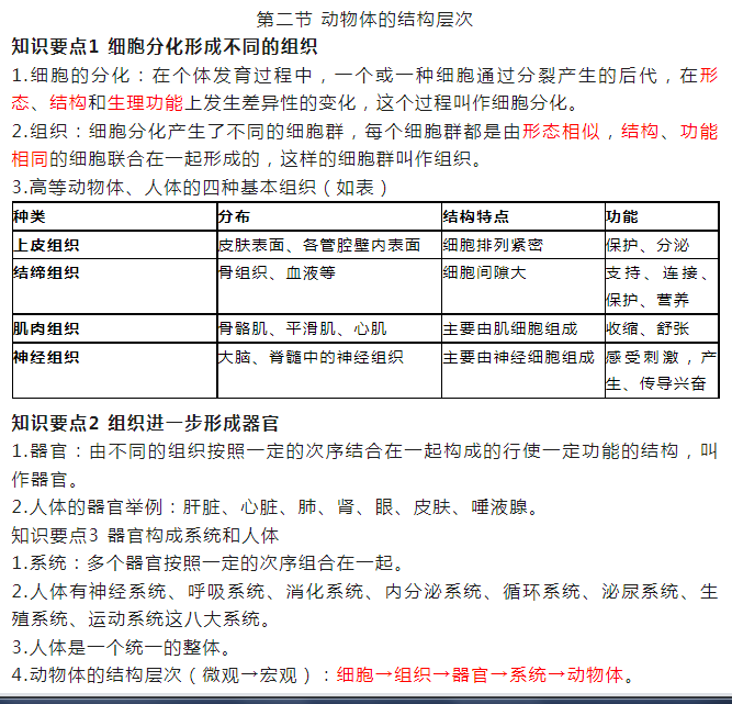 2023年初中生物体的结构层次知识点五:动物体的结构层次