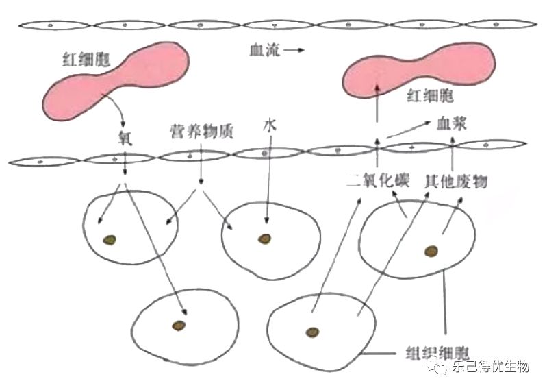 毛细血管管壁仅由一层扁平上皮细胞构成,管内血流速度慢,便于血液与组织细胞充分地进行物质交换。