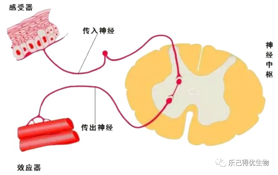 反射弧的结构:感受器→ 传入神经→ 神经中枢→ 传出神经→ 效应器