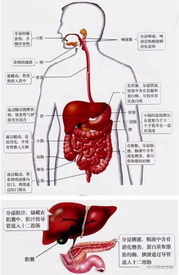 消化腺由唾液腺、胃腺、肝脏(最大)、胰腺、肠腺等器官组成。