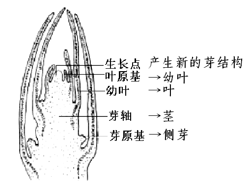 (2)枝芽的结构和发育:见右图