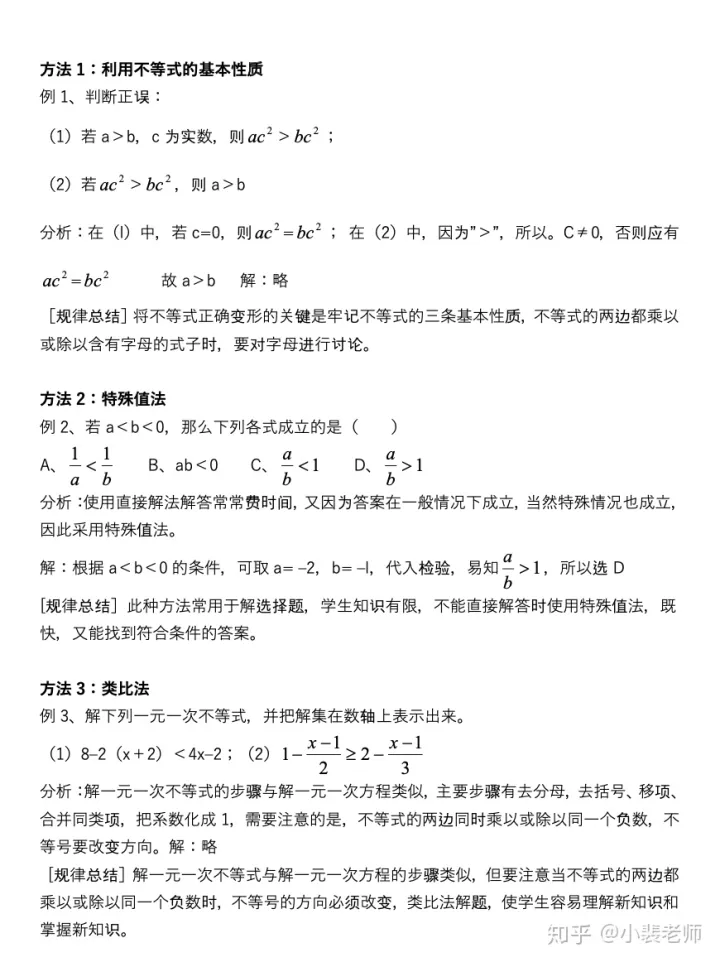 (2)解法:与解一元一次方程类似,但要特别注意当不等式的两边同乘以(或除以)一个负数时,不等号方向要改变。
