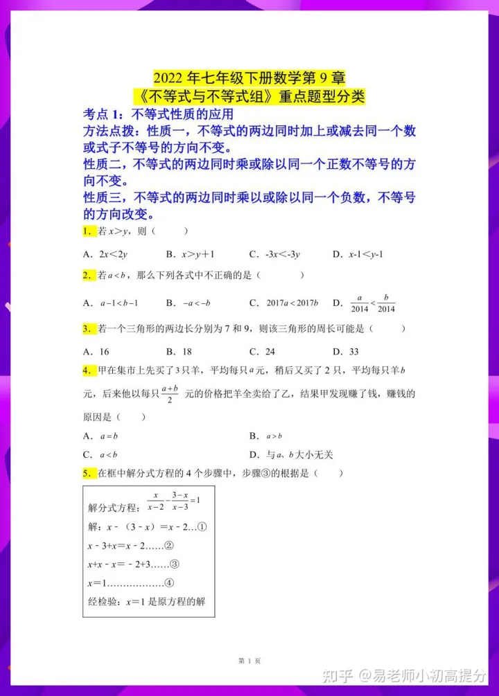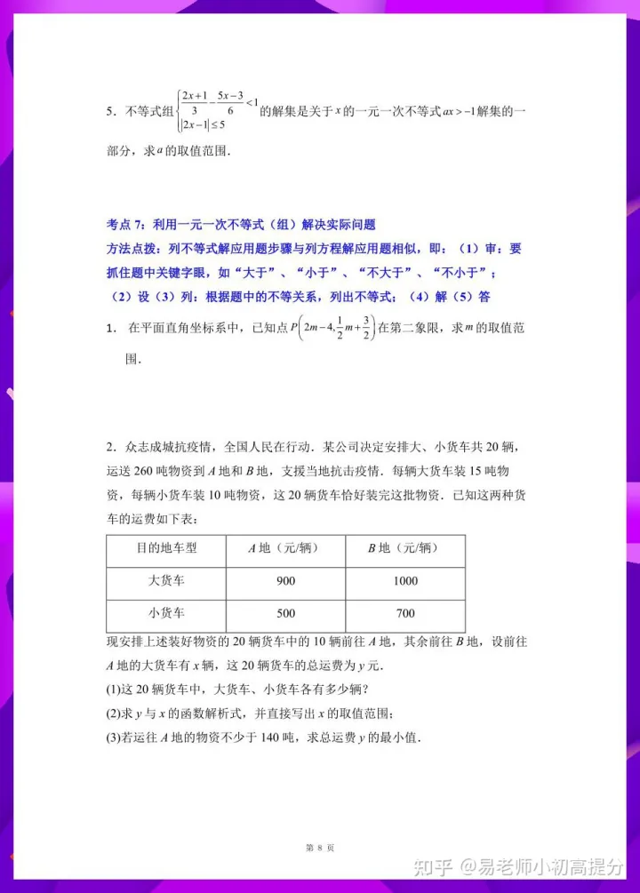 2023年初中数学不等式函数题怎么做