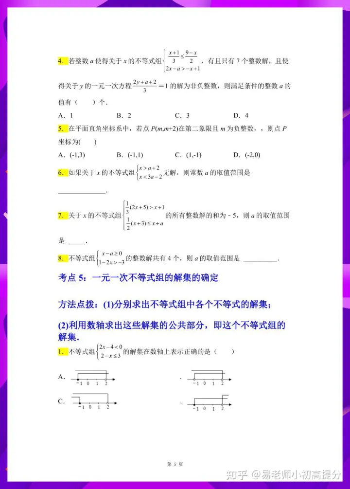 2023年初中数学不等式组高频考点练习题