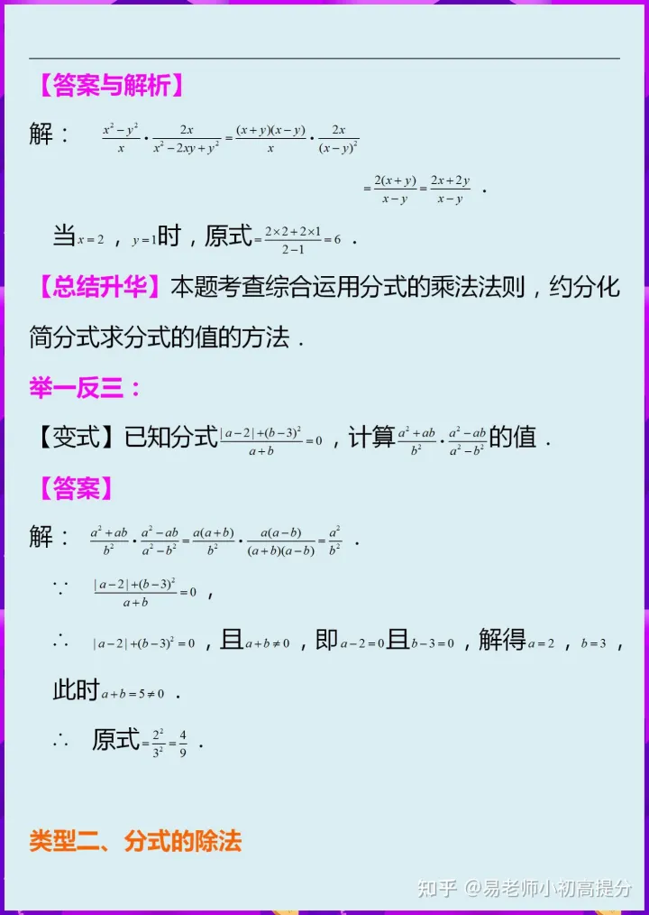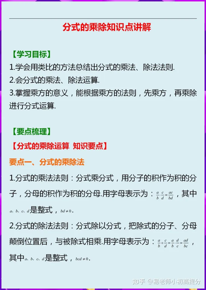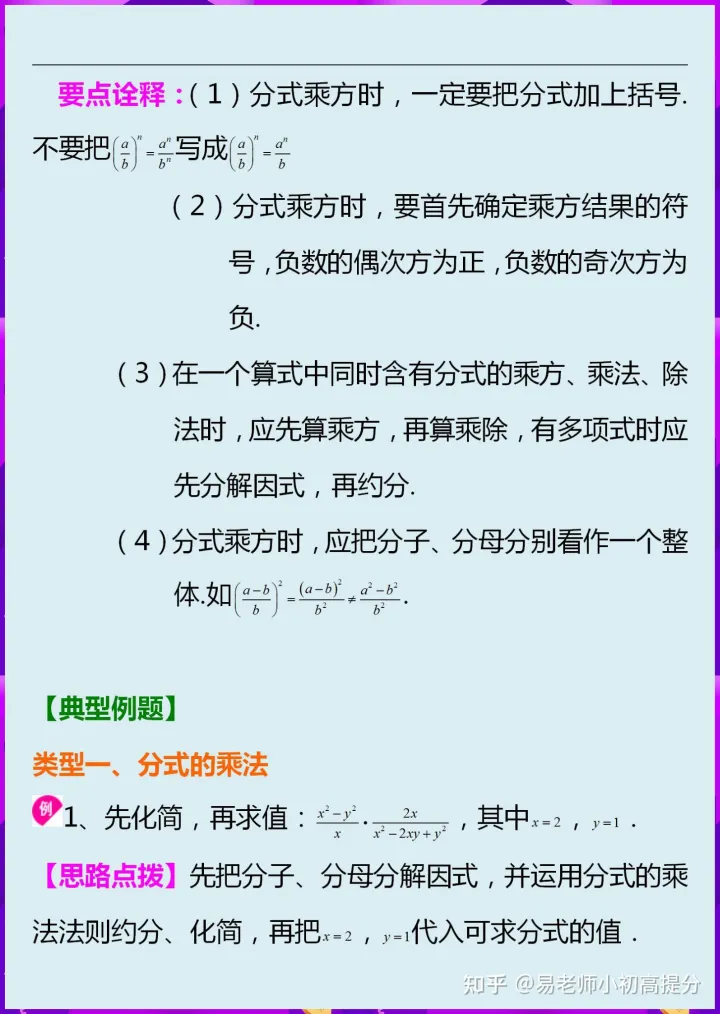 2023年初中数学八上分式的乘除知识点讲解