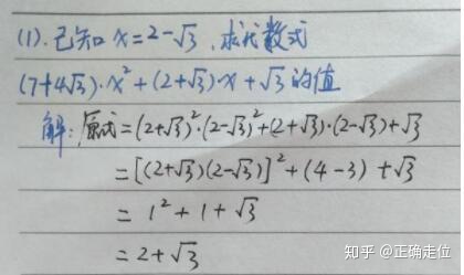 例2、这道题,仔细观察已知条件和给出的代数式,发现把x的值代入之后,就有神奇的发现,恍然大悟。