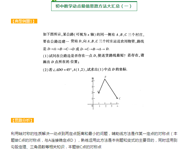 2023年初中数学动点最值思路方法:轴对称变换