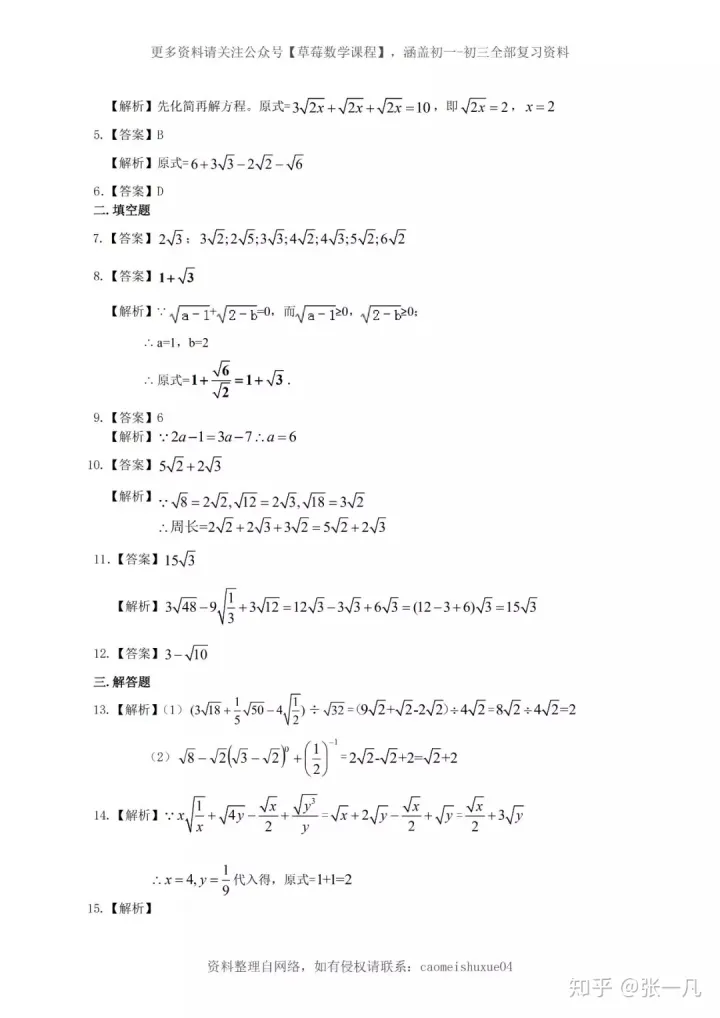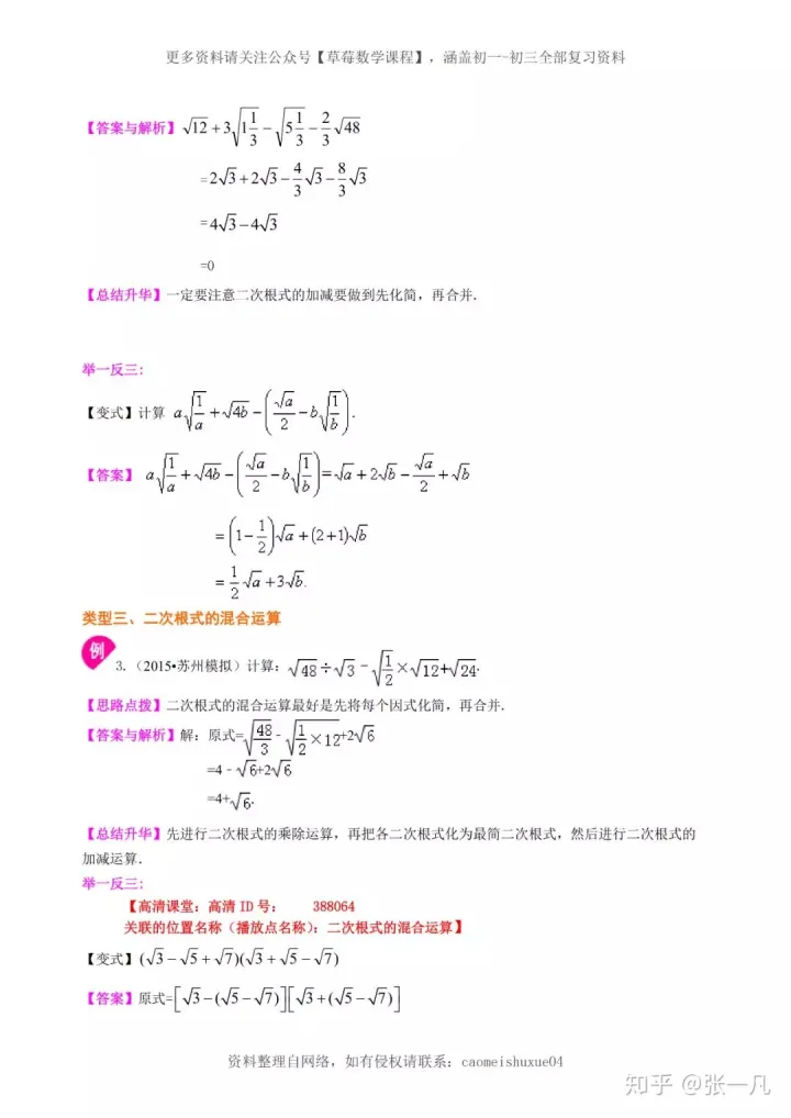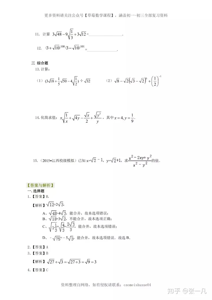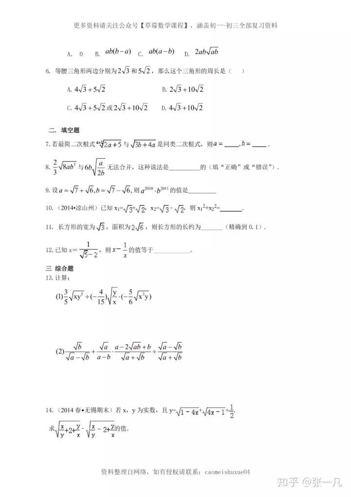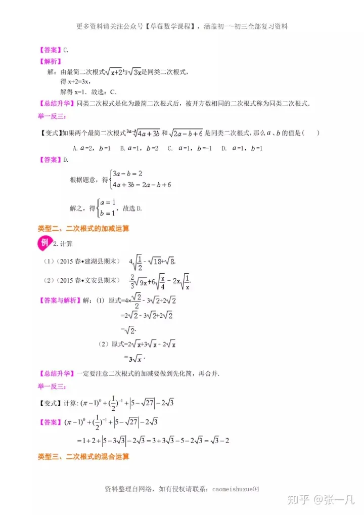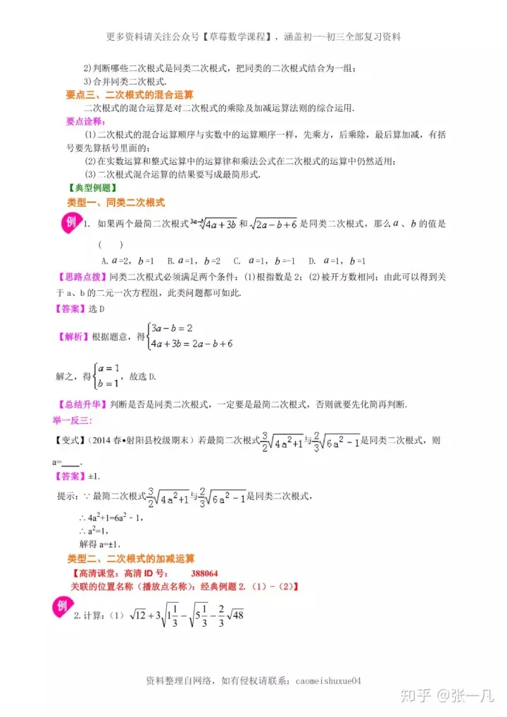 2023年初中数学四道二次根式常考经典题型