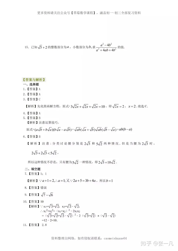 2023年初中数学二次根式和完全平方式的综合题型