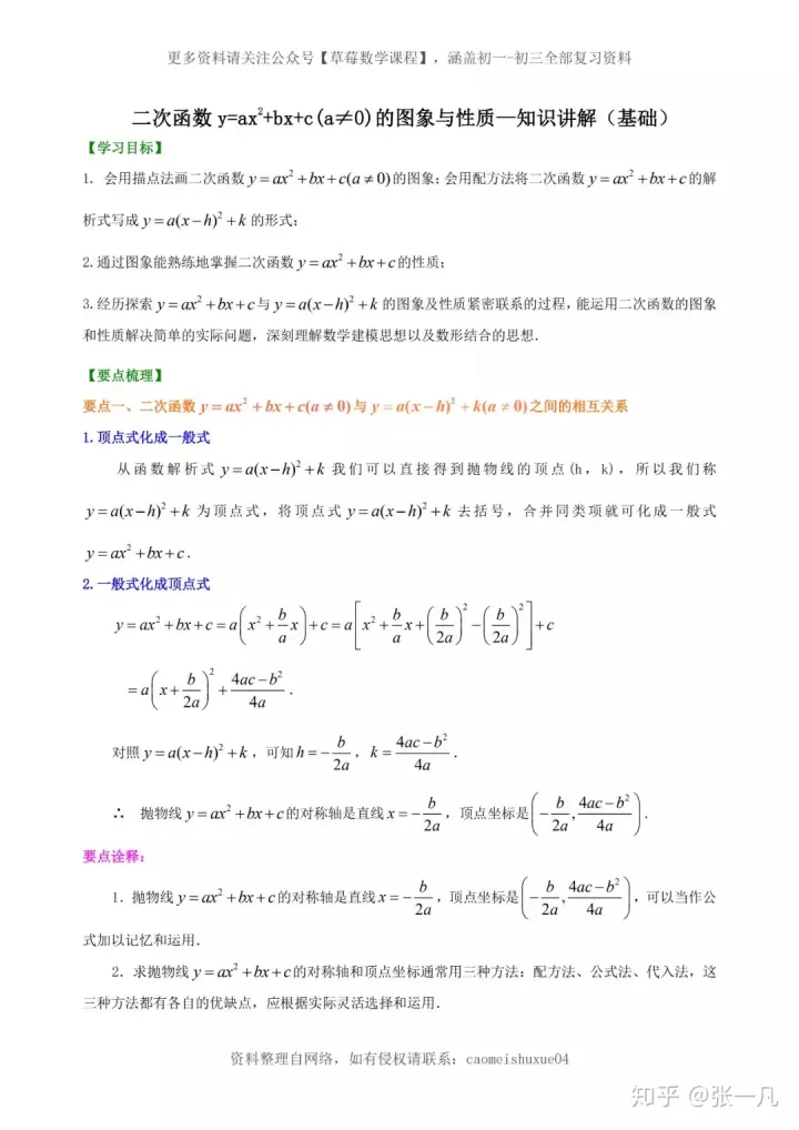 初中数学二次函数的图象与性质