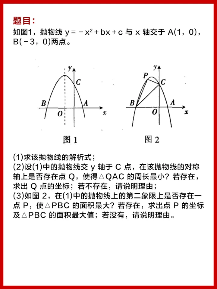 若要使△PBC 的面积最大,只需使 BC 上的高最大.过点 P 作 BC 的平行线 l,当直线 l 与抛物线有唯一交点 (即点 P)时,BC 上的高最大,此时△PBC 的面积最大