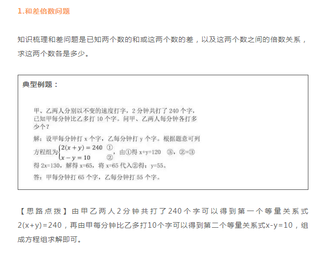 2023年初中数学二元一次方程典型例题:和差倍数问题