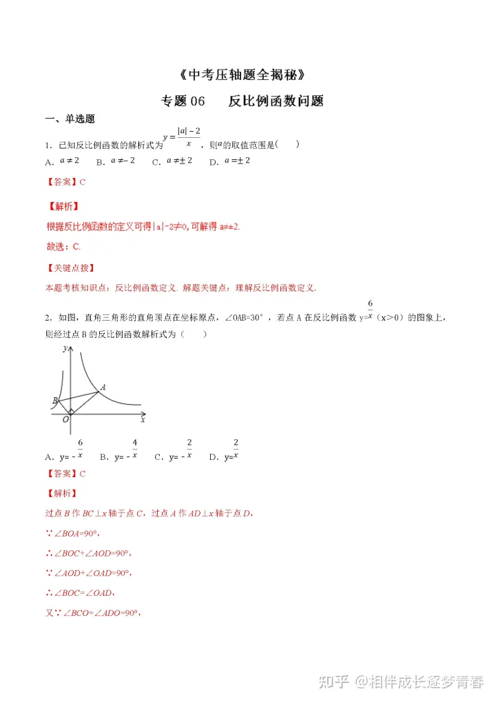 2023年初中数学反比例函数k的几何意义