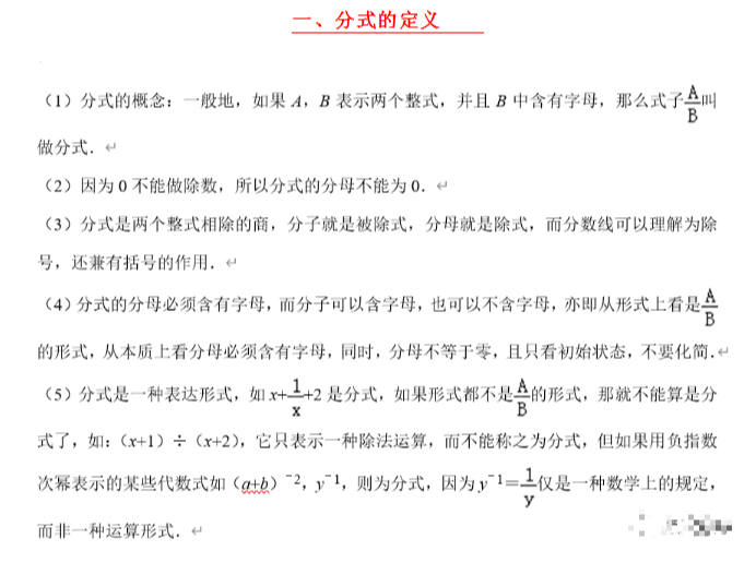2023年初中数学分式的考点:分式的定义