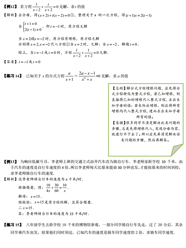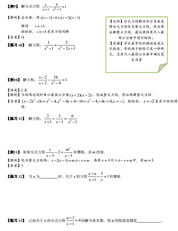 2023年初中数学分式:含有字母的分式方程的解法