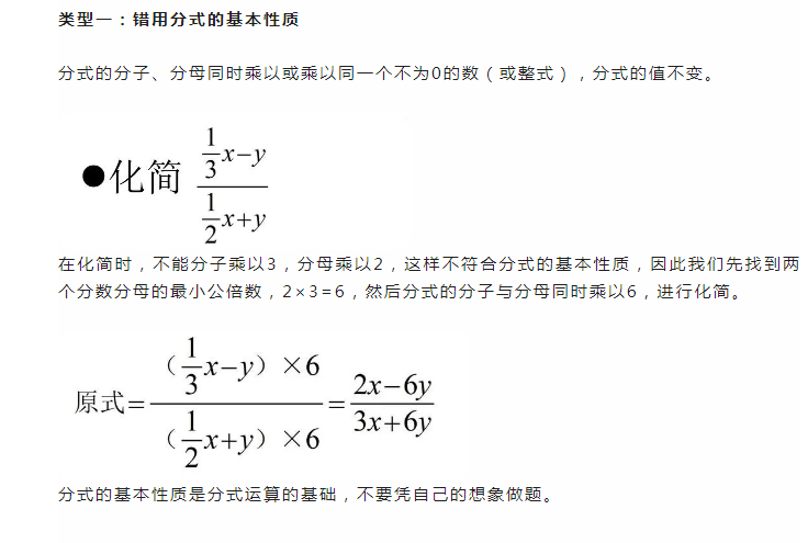 2023年初中数学分式运算易错点:错用分式基本性质