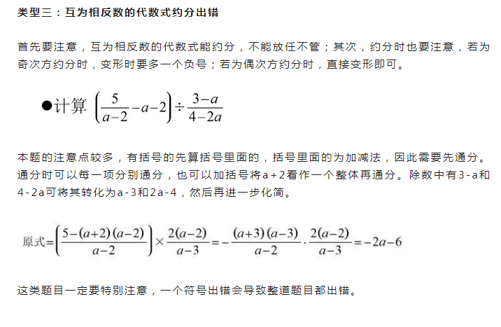 2023年初中数学分式运算易错点:互为相反数的代数式约分出错