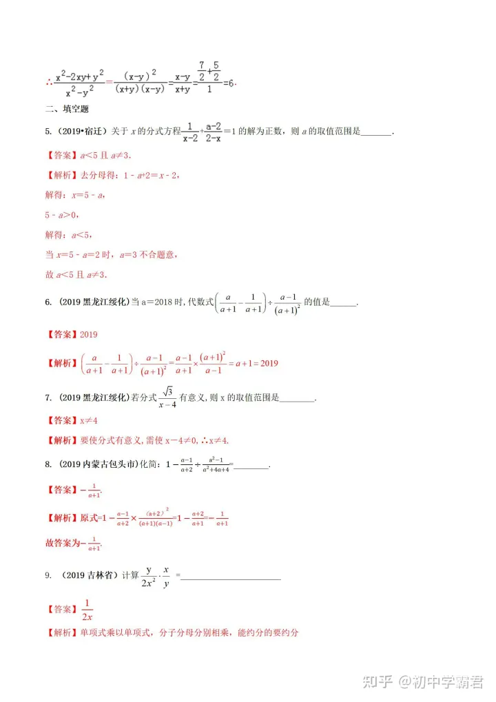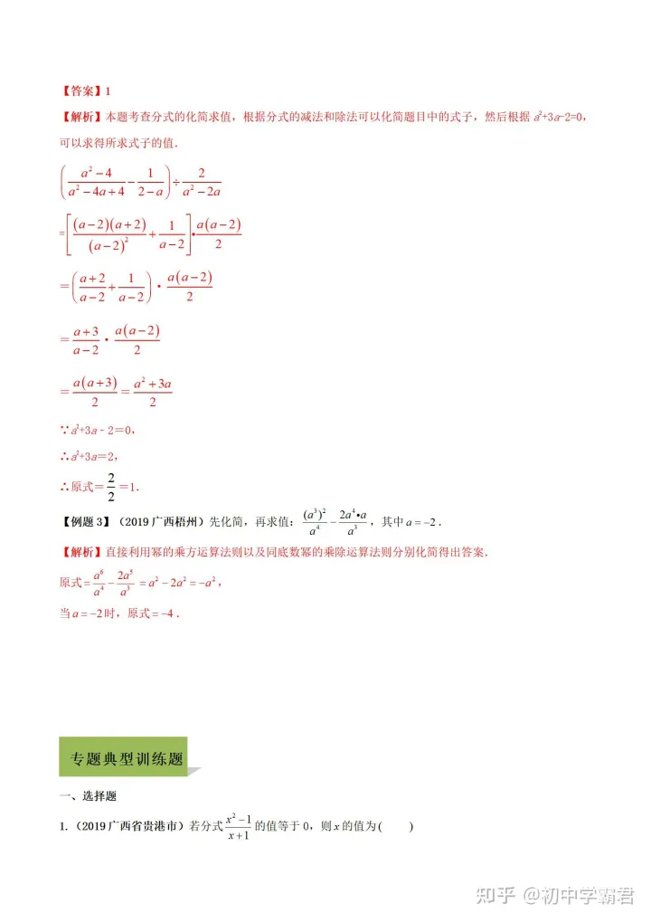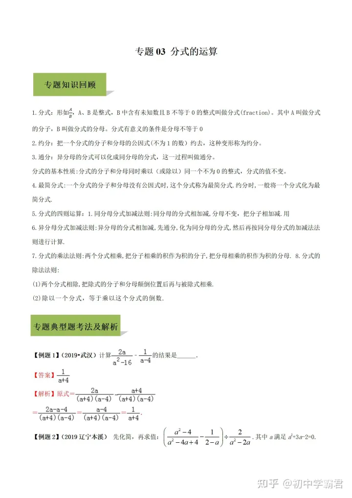 2023年初中数学分式知识点及例题