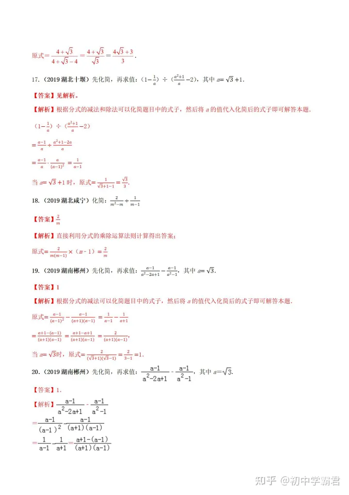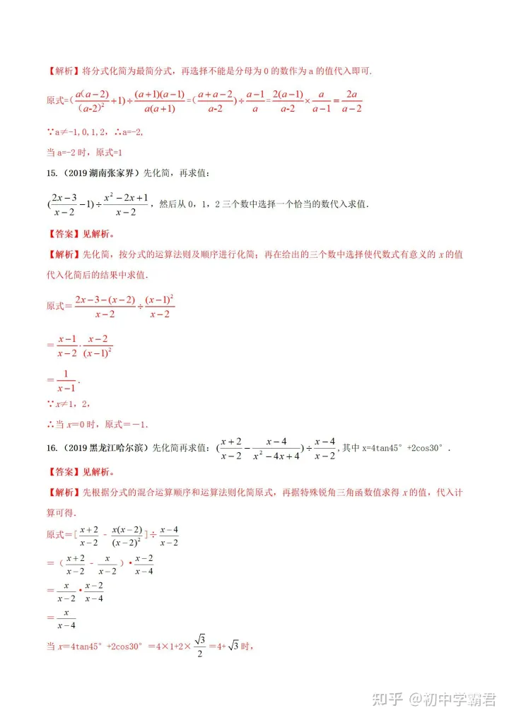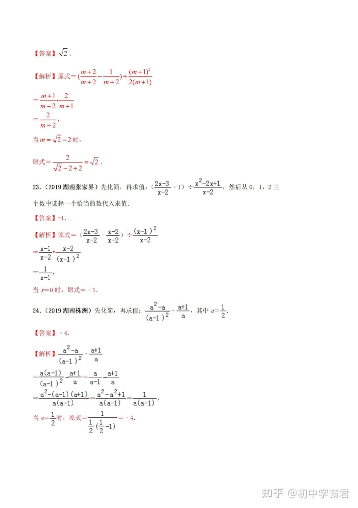 2023年初中数学分式运算必刷题