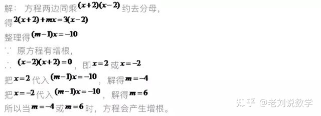 【解析】处理这类问题时,通常先将分式方程转化为整式方程,再将求出的增根代入整式方程,即可求解。