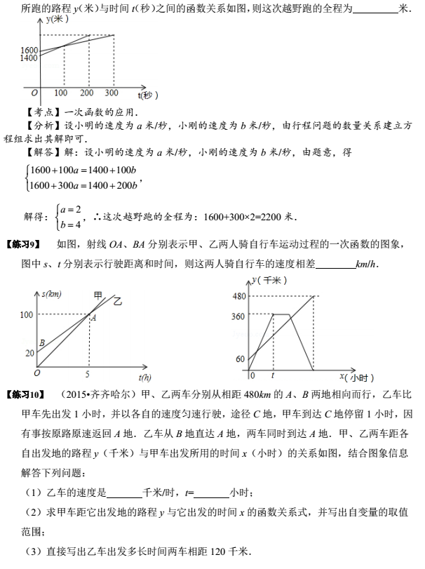 2023年初中数学考点直击:一次函数