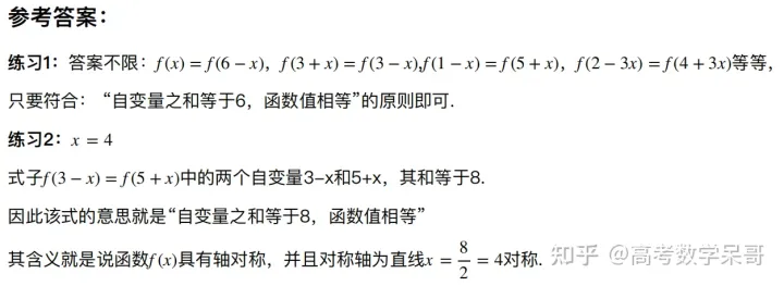 ⽐如f(a−x)=f(b+x),其⾃变量之和为常数,函数值相等,因此就表示f(x)具有轴对称,对称轴为“⾃变量之和的⼀半”,即x=a+b2