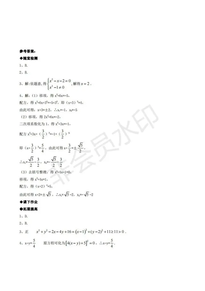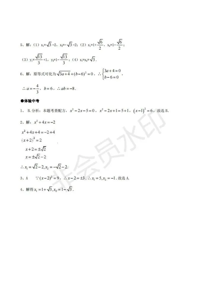 2023年初中数学:一元二次方程配方法解析