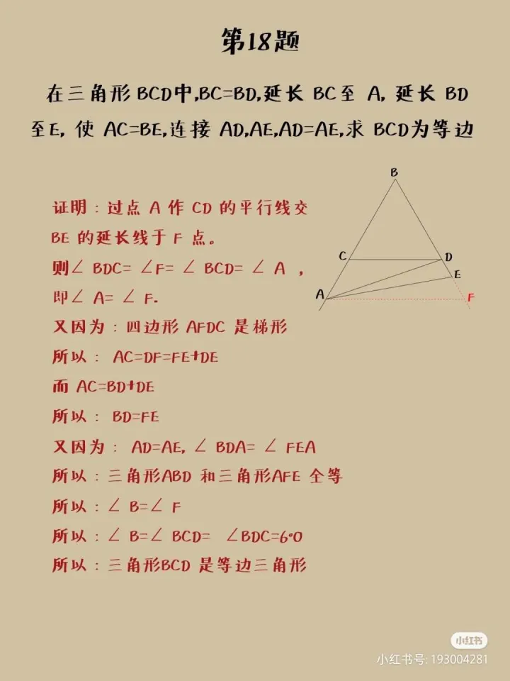 数学是一门需要反复练习的学科,-定要多做几何习题,不断的刷题,不断的总结,熟能生巧。只有这样,几何题才能少丢分、不丢分。
