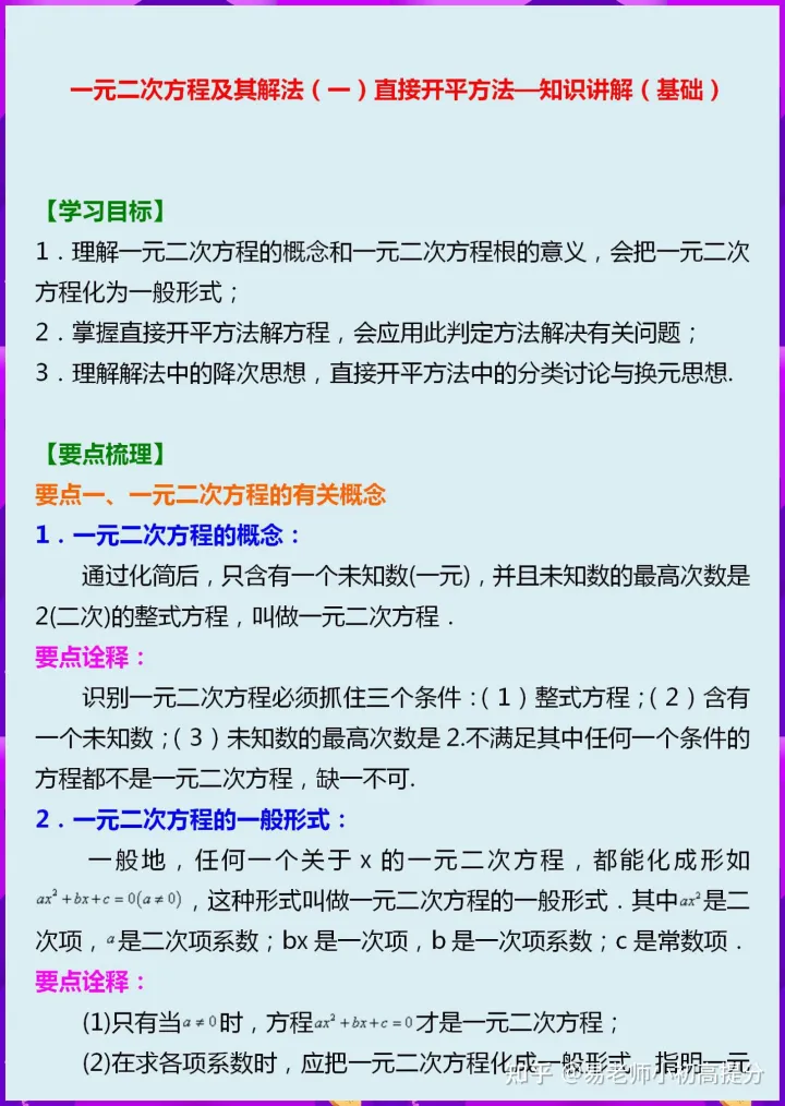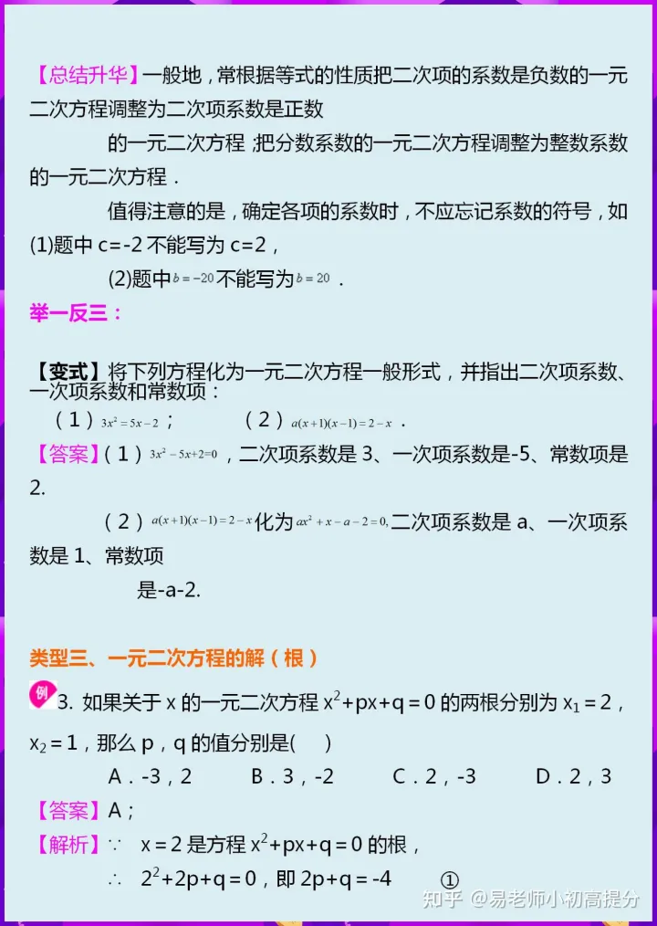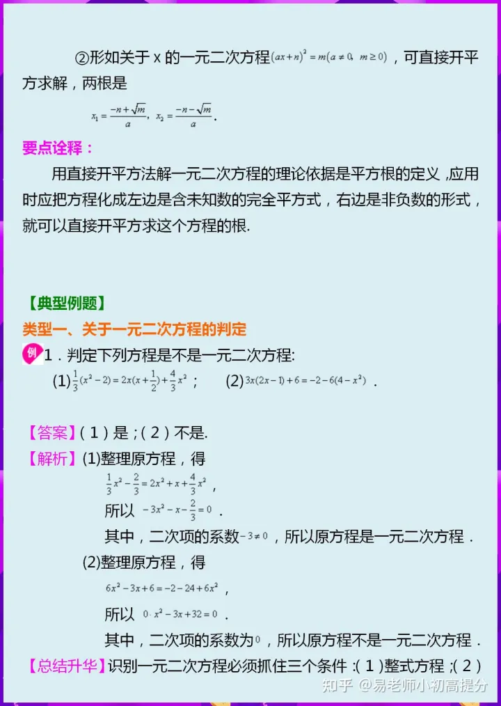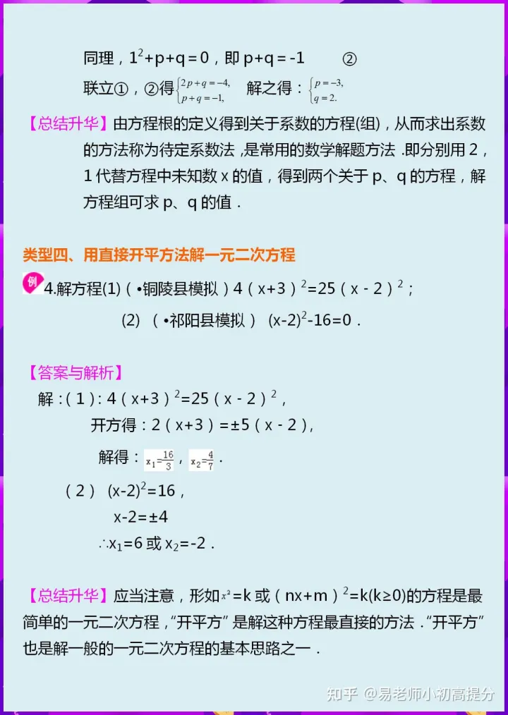 2023年初中数学一元二次方程知识点解析和题型汇总