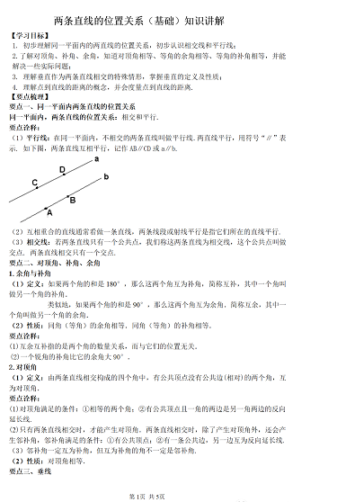 两条直角线之间的关系