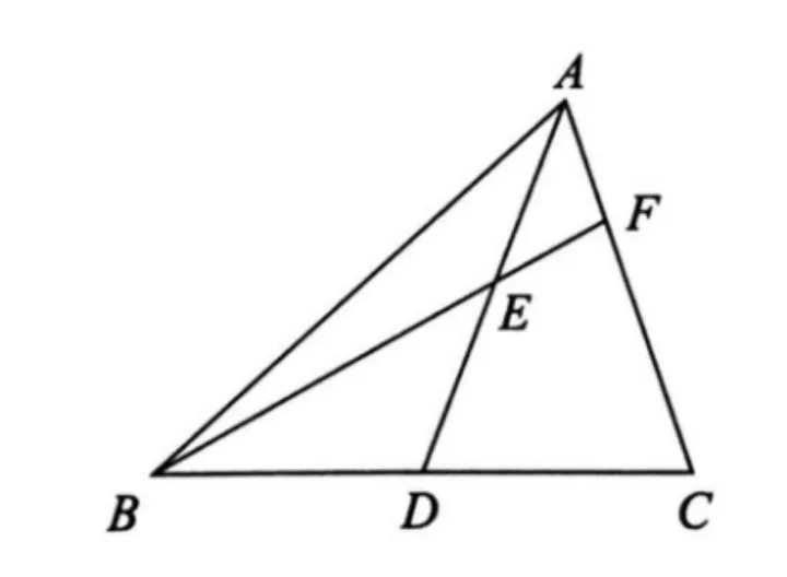 例1. 如图,已知在△ABC中,AD是BC边上的中线,E是AD上一点,连接BE并延长交AC于点F,AF=EF。求证:AC=BE。
