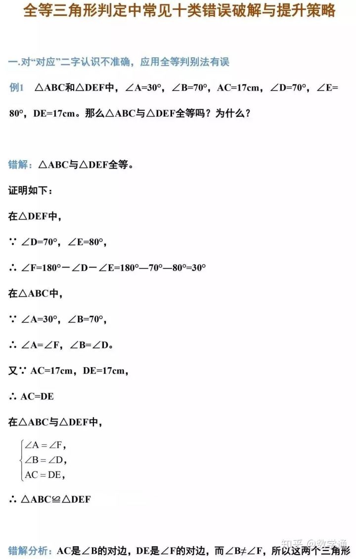 2023年初中数学:全等三角形十类易错题型