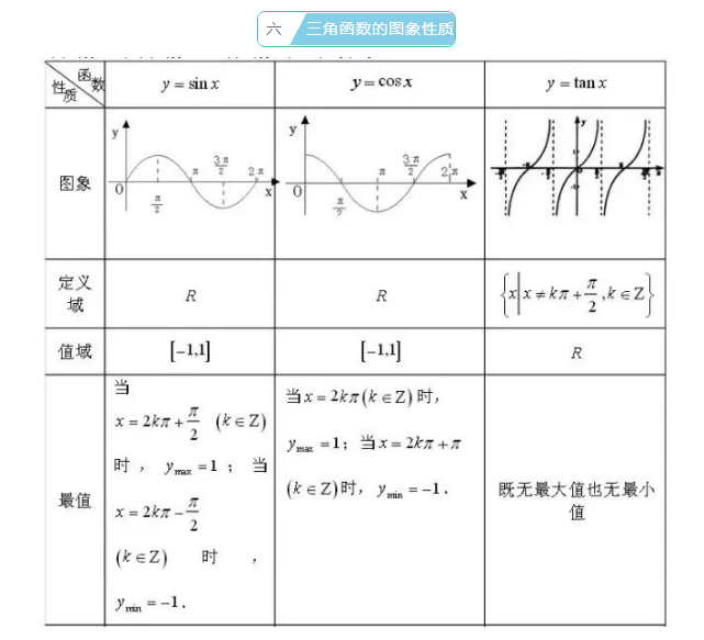 2023年初中数学三角函数知识点:三角函数的图像性质