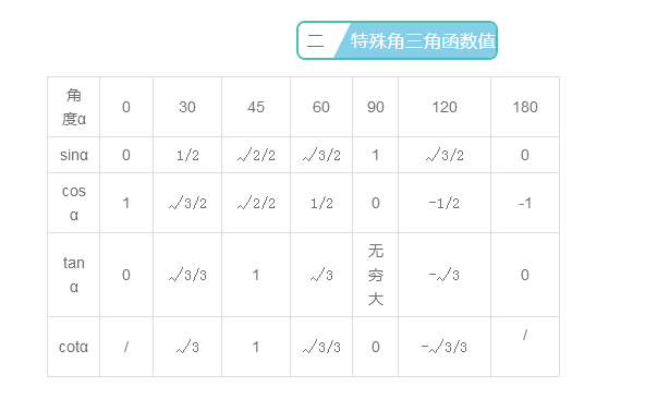 2023年初中数学三角函数知识点:特殊角三角函数值