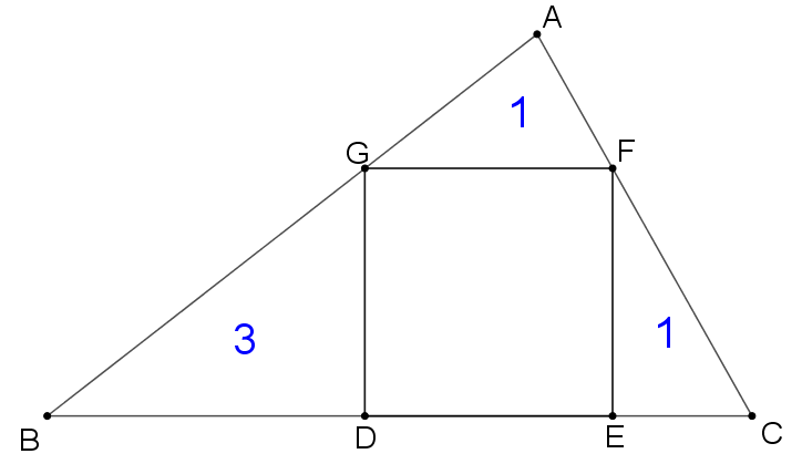 如图,△ABC内接正方形DEFG,△AGF、△FEC、△BDG的面积分别是1、1、3,则正方形DEFG的边长为 _