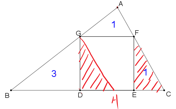 正方形GDEF的面积=平行四边形GHCF的面积=4
