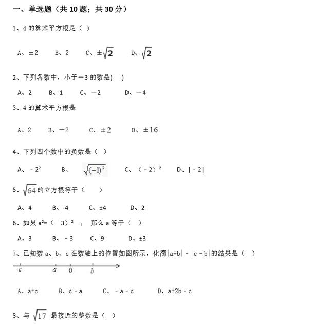 2023年初中数学实数测试题