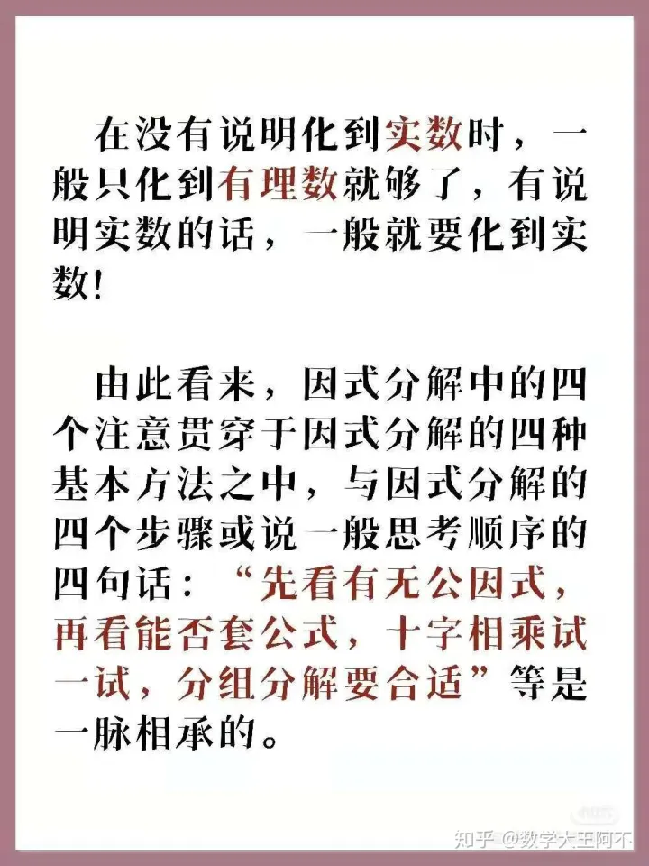 ⚠️注:分解因式必须进行到每一个多项式的因式都不能再分解为止,即分解因式要彻底。