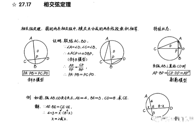 2023年初中数学圆的常考热点:相交弦定理