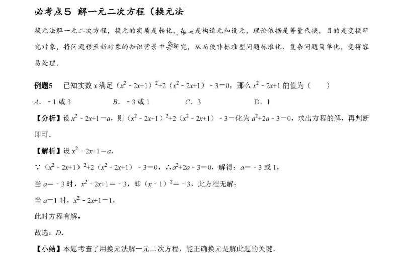 2023年初中数学一元二次方程必考点梳理五