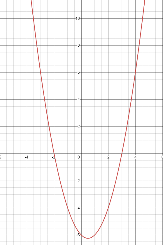 毫无疑问,两个解分别是3和-2。那么根据图像,可以得或x≥3或x≤−2。